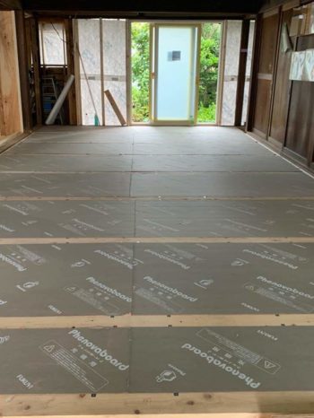 その上に捨貼の特厚合板を敷いていきます。