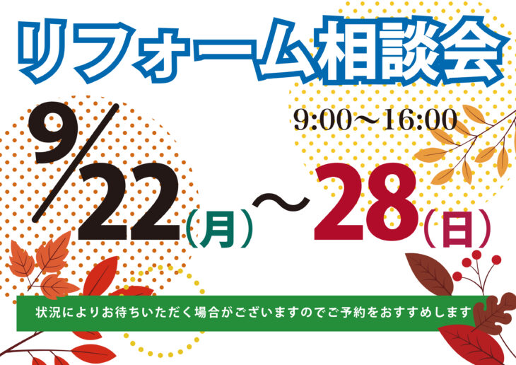 HOMEイベント・チラシ・メディア情報イベント9月22日〜28日はリフォーム相談会 9月22日〜28日はリフォーム相談会(終了しました) ※状況によりお待ちいただく場合がございますので下記の【ご予約はこちらから】からのご予約をおすすめします 会場:ゆいリビング 西尾市住崎1丁目97−1 コンテスト受賞作品はこちら ゆい・リビングについて 選ばれる10の理由 会社満足のために 会社案内 感動力の充実 社員満足のために 社員紹介 リクルート情報 協力業者満足のために 協力業者「結の会」とは 顧客満足度向上プロジェクト 顧客満足のために お客様の声 一覧 お客様紹介~お客様の声~ コンセプト atataka あたたかプラス あたたかスペース あたたかハーフ 古民家 古民家スペース 古民家ハーフ 古民家プラス ZUTTO ZUTTOプラス ZUTTOスペース ZUTTOハーフ きらり きらりプラス きらりスペース きらりペイント 店舗リフォーム 施工事例 施工事例一覧 ALL 性能向上リノベ住宅 ZUTTO リノベプロデュースハウス atataka 古民家再生リノベ お化粧リフォーム き・ら・り 店舗リフォーム エクステリア コンテスト受賞リノベ オリジナル イベント・チラシ・メディア情報 情報一覧 モデルハウス イベント チラシ メディア ゆい・リビングコラム ゆい・リビングの現場日記 スタッフブログ 代表者コラム 代表者コラム一覧 その他 その他 代表者コラム お家のこと リフォーム事例 大切な金の話 お役立ち情報 リノベーションの流れ 20のチェックポイント お問い合わせ お問い合わせ © 2019 株式会社ゆい・リビング