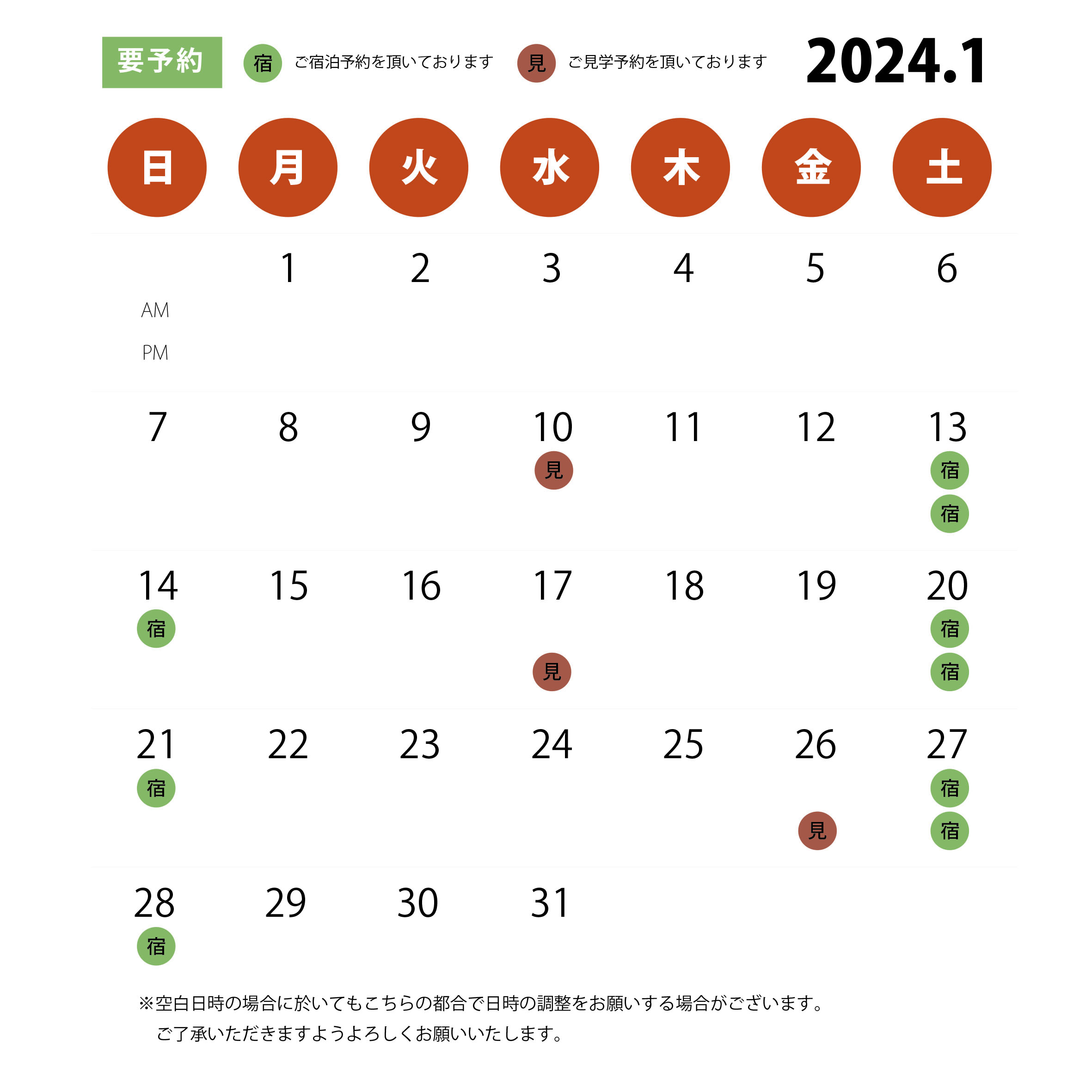 HOMEイベント・チラシ・メディア情報モデルハウス2024年1月モデルハウスのご予約状況 2024年1月モデルハウスのご予約状況(終了しました) 詳しい情報はこちら見学会 宿泊体験 会場 ゆいリビングモデルハウス 一言 要予約 備考 下記の予約フォーマット【お問い合わせ内容】にご宿泊希望もしくは見学希望とご入力くださいますようよろしくお願いいたします。 お申し込みはこちらから 必須お名前 例: 山田 太郎 必須電話番号 例: 0563-00-0000 必須イベント名 例: 完成見学会 任意参加希望日 第一希望日 第二希望日 第三希望日 ※【定休日】水曜日・GW・盆・正月 例: 1/1 10:00-12:00 必須参加人数 お子様同伴 例:2名 必須メールアドレス 例: t_yamada@sample.jp 必須郵便番号 住所検索 例: 123-4567 必須住所 例:愛知県西尾市**** 任意お問い合わせ内容 ※お急ぎの方は、 直接 0563-54-8332(9:00~17:00)まで、お電話ください。 例:※Telにて日時を決めたい場合や、 「何曜日が希望」等は、こちらに入力してください。 ※相談内容は個人情報保護法に適用いたします。 24時間以内に回答を心がけておりますが、相談内容等によって、 2〜3日かかる事もございますので、何卒御了承ください。 お電話でもお気軽にどうぞ! 内容をご確認の上、よろしければ下記の「入力内容を確認する」ボタンを押してください。 個人情報の取り扱いについて 個人情報利用目的 ・お客様のご要望に合わせたサービスを提供させていただくための各種ご連絡。 ・お問い合わせいただいたご質問への回答のご連絡。 尚、お客様から収集する個人情報は弊社の定めるプライバシーポリシーに則って厳重に管理いたします。 プライバシーポリシー 弊社では、利用者のみなさんの個人情報がきちんと守られることを、何よりも大切にしています。また、利用者ご本人への事前の許可なしに第三者に個人情報を配送作業以外に開示することは絶対にいたしません。 どんな些細な事でも結構です。ご相談、お見積もりなど、お気軽にご連絡下さい。上記メールフォームからご連絡いただくか、電話にてご連絡ください。 必須マークがついている項目は必ずご記載下さい。(株)、(有)や丸囲み数字等の機種依存文字は、文字化けの原因となりますので、使用しないようお願いいたします。 イベント・チラシ・メディア情報一覧はこちら ゆい・リビングについて 選ばれる10の理由 会社満足のために 会社案内 感動力の充実 社員満足のために 社員紹介 リクルート情報 協力業者満足のために 協力業者「結の会」とは 顧客満足度向上プロジェクト 顧客満足のために お客様の声 一覧 お客様紹介~お客様の声~ コンセプト atataka あたたかプラス あたたかスペース あたたかハーフ 古民家 古民家スペース 古民家ハーフ 古民家プラス ZUTTO ZUTTOプラス ZUTTOスペース ZUTTOハーフ きらり きらりプラス きらりスペース きらりペイント 店舗リフォーム 施工事例 施工事例一覧 ALL 性能向上リノベ住宅 ZUTTO リノベプロデュースハウス atataka 古民家再生リノベ お化粧リフォーム き・ら・り 店舗リフォーム エクステリア コンテスト受賞リノベ オリジナル イベント・チラシ・メディア情報 情報一覧 モデルハウス イベント チラシ メディア ゆい・リビングコラム ゆい・リビングの現場日記 スタッフブログ 代表者コラム 代表者コラム一覧 その他 その他 代表者コラム お家のこと リフォーム事例 大切な金の話 お役立ち情報 リノベーションの流れ 20のチェックポイント お問い合わせ お問い合わせ © 2019 株式会社ゆい・リビング