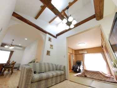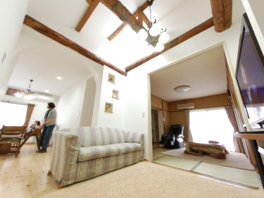 | お客様のご要望 | ・父親が他界し、母親のみの1人暮らしになってしまった為私達(若世帯)が一緒に住むことに。ただ何とかなると思って越しては来ましたが、やはり平屋で子供も含め6人で住もうと思うと狭く、10坪ある横屋があっても数年すれば子供達の部屋の事もあるので、高齢の母へバリアフリーの環境も作ってあげたかったのでリフォームを依頼しました。間取りや内装はこれから一番使っていく嫁さんに一認。(ご主人) ・とにかく収納を増したい。あとリビングで団らんできる明るいお部屋にしたい。(奥様) |