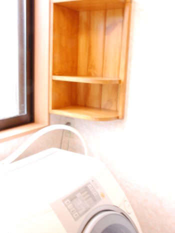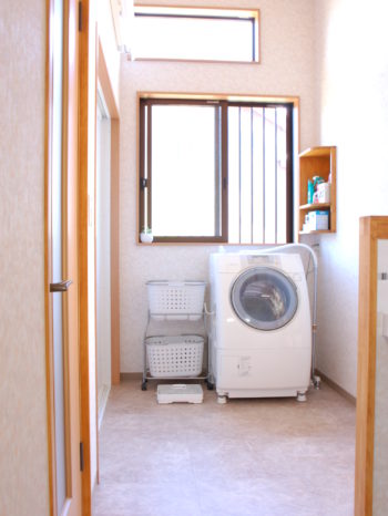 ・洗濯機の横、洗面鏡の横の収納も便利です。必要な物が欲しい場所に置けるので、朝の忙しい時間は特に家事がはかどっています。