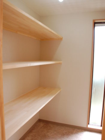 - ・キッチンに収納がなく、物が溢れていましたので、将来を見据えた収納力のある収納部屋を設けました。どの場所からも使いやすい様、場所も考えてあります。