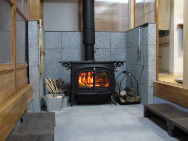 ・天井に石膏ボード 「生活の中心部へ設置」 ・皆が目の届くところに薪ストーブがあるので安心