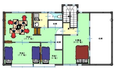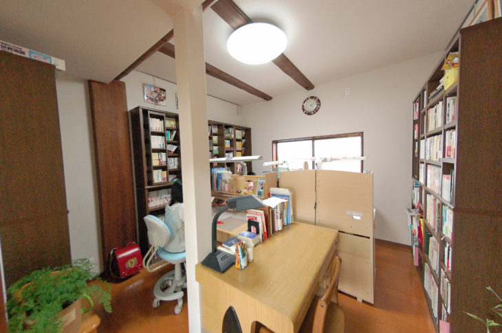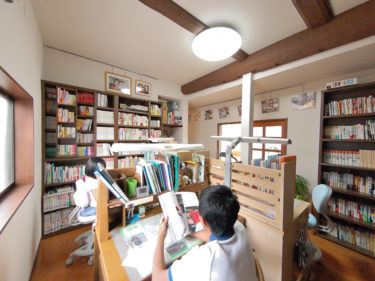 | お客様のご要望 | 学習机は兄妹同じ部屋にして、私(奥様)が見渡せるようにできますか? 長男も来年から中学生になるので、各々の今後のプライベートを確保したり、多くなった物をすっきり収納できる部屋をつくることができますか? 物が増え、特に夫婦共通の趣味である書籍の収集が付かなくなっているのでできるだけ本棚がほしいです。 |