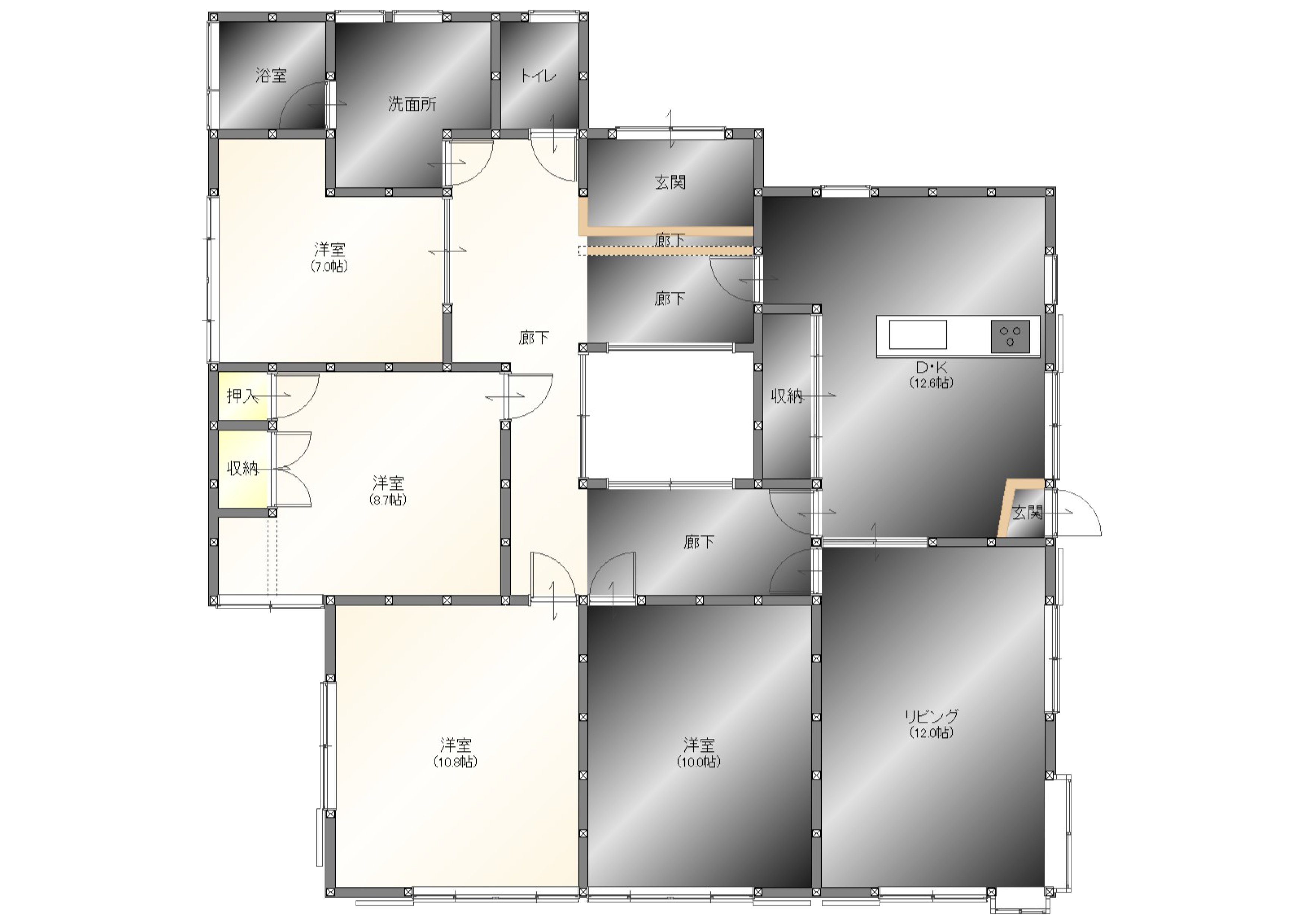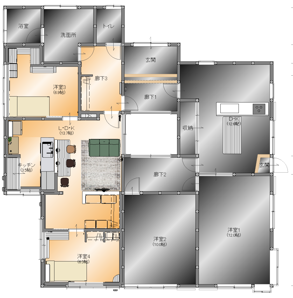 広いお家でしたので、現在使用しているLDKはそのまま残し、将来息子さん家族がリノベーションして使用しても良いようなプランニングを行いました。