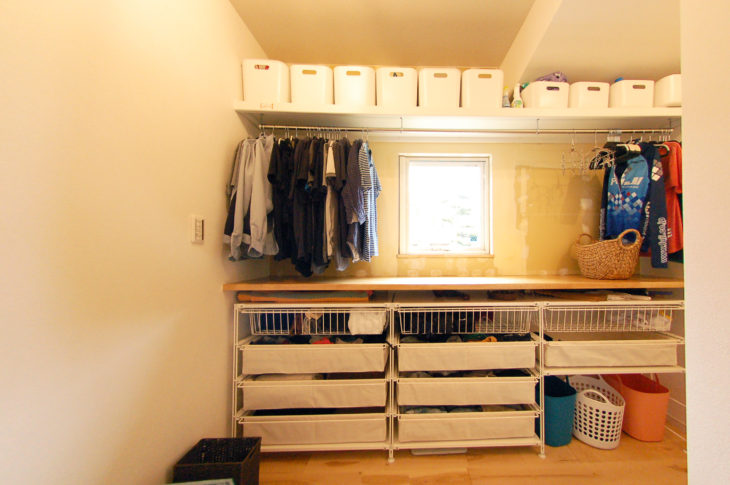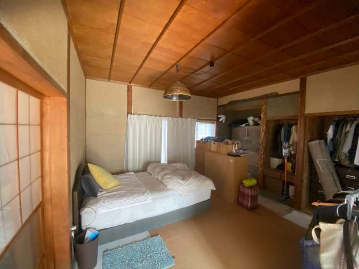 物置スペース兼寝室。洋服など押入れに収まりきれないもので溢れていました。