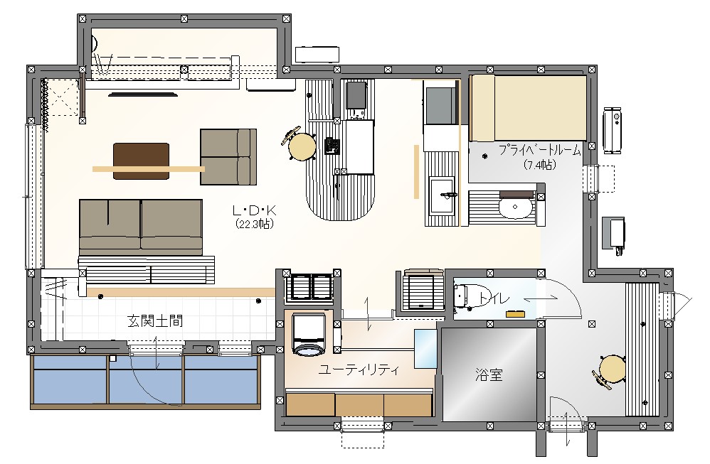 | お客様のご要望 | 1.今後を見据え「楽しく」「健康」に暮らせるリモデルがしたいです。 2.わたしの「やりたいコト」を実現して欲しいです。 3.娘が遊びに来やすくなる、デザイン性のある素敵なリモデルがしたいです。 |