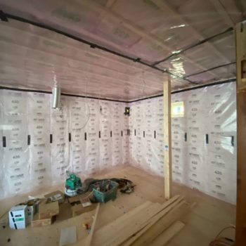 ワーキングスペースとユーティリティースペースの壁面はあえて仕上げずお引き渡しさせていただきました。これから一つの楽しみとして、DIYのお好きな施主様が塗られ仕上げるそうです。