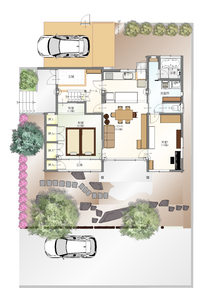 外出する際は急な階段を降り、公道に一度出てから駐車場へ向かっているため、今後のご両親の生活やお子様の安全性考えると改善する必要があると感じました。