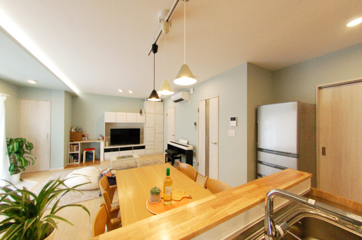 対面キッチンにしたことでダイニングも広々し、家族全員で食事をすることが増えたそうです。動線も改善され家事効率も格段にあがり、お料理中の親子のコミュニケーションの時間が増えました。