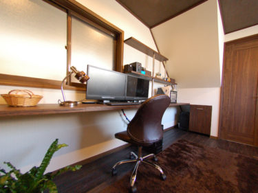 ご主人の書斎はブラウンと白を基調に落ち着いた大人の空間に。