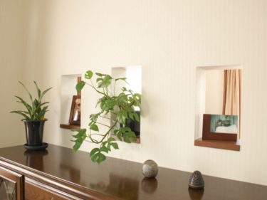 構造上抜けない壁のため、少しでも明りを取り込む工夫をし亡くなったワンちゃんの写真を飾りました。