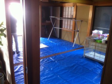 愛犬がなくなる前は、ペットルームとして使用していた和室。ブルーシートの下の畳は腐っていました。