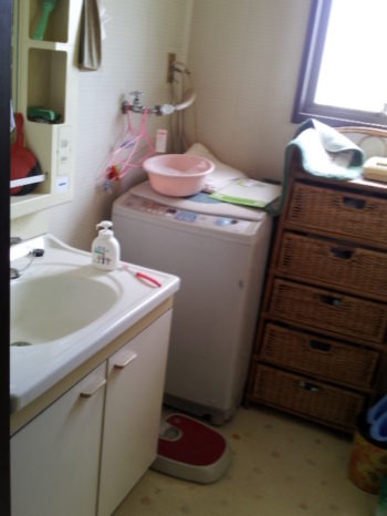 お客様が洗濯場所を浴室の隣にある屋外の物干し場に持って行きたいとヒアリングで知る。