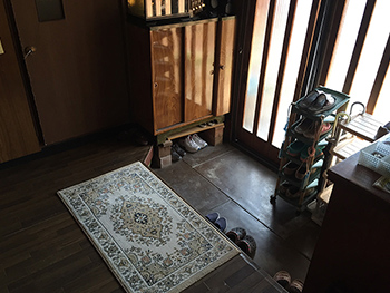 玄関土間はホールに比べて狭く、収納も少ないので靴がいっぱいになっていました。