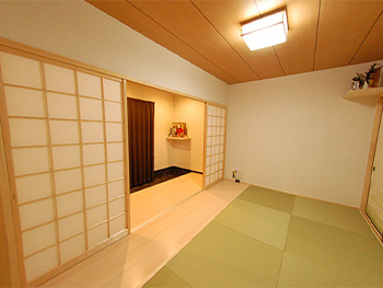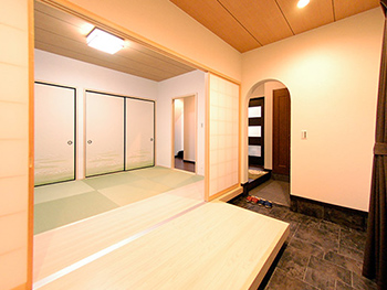 玄関から和室にかけて土間をつくり、和室へアクセスしやすくしました。