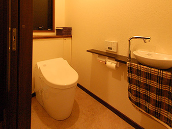 手洗い付きのトイレは、空間を窮屈に感じさせていました。