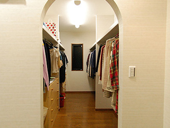 クローゼットは、あえて建具を外したことで寝室に奥行きを感じさせます。