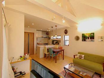 可能な限り天井を高くし、広々とした明るいLDKになりました。