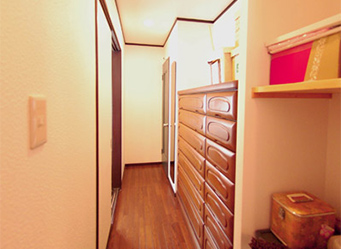 6帖の洋室を、廊下と趣味部屋に分けました。廊下は、大きなタンスがすっぽり収まるような造りになりました。