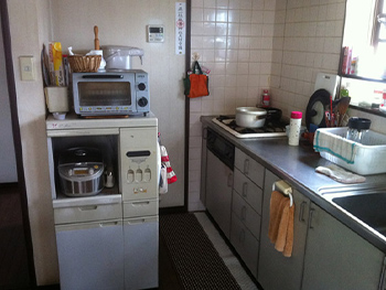 家電が置いてあり、お料理するのに少し窮屈そうです。
